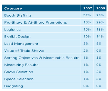 Notice the big swing in the number of tips offered that are related to better booth staffing: more than double the proportion we saw last year. Here's a great example of what one of your fellow readers shared: