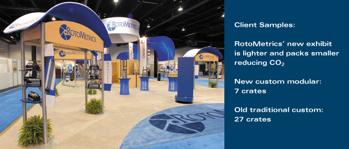 RotoMetrics' old traditional custom booth packed into 27 crates and filled an entire semi. The new custom modular exhibit compacts into 7 crates.