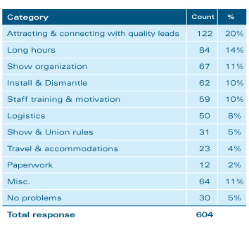 Attracting & connecting with quality leads was pointed to by a tremendous number of the respondents as a source of trouble for their exhibiting duties. Here is an apt comment that's quite representative of the many we received in this category: