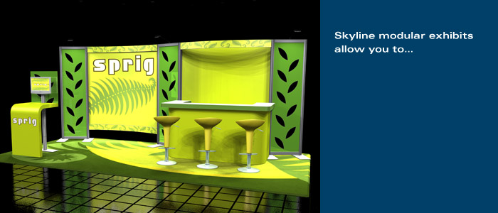 Skyline modular systems give you inline exhibit solutions that are flexibile to adapt to various booth sizes and graphic changes, such as: