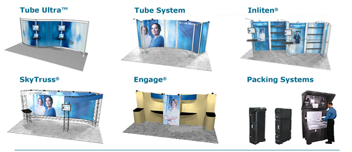 Skyline has a variety of exhibit systems that are compatible to create nearly any look -- and meet any function -- imaginable. Skyline exhibit systems are structural to support AV equipment and product.