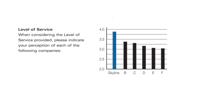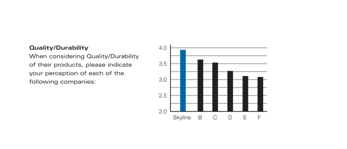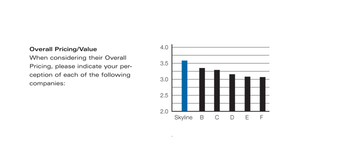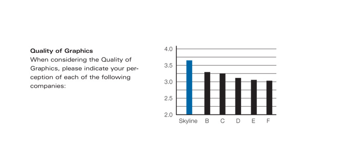 Skyline also ranked No.1 by a wide margin on four factors that influence buying decisions, according to EXHIBITOR's 2007 Trade Show Display Survey. In a rating of the 6 largest suppliers of portable exhibits by 1,294 domestic exhibitors, Skyline received roughly double or triple the number of top scores for its closest competitor on each measure -- quality/durability, level of service, quality of graphics, and overall pricing.