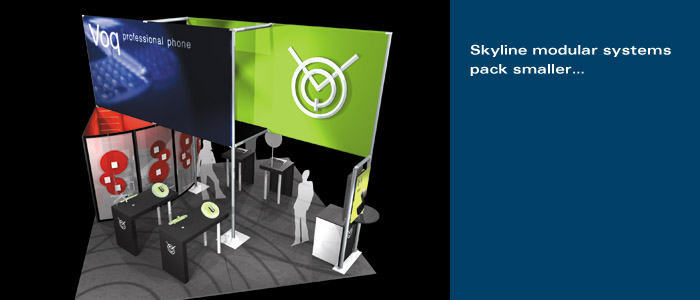 An independent study by Tradeshow Week proved that Skyline custom modular exhibits weigh 60% less than traditional custom exhibits -- saving you thousands on shipping and drayage, show after show, year after year.
