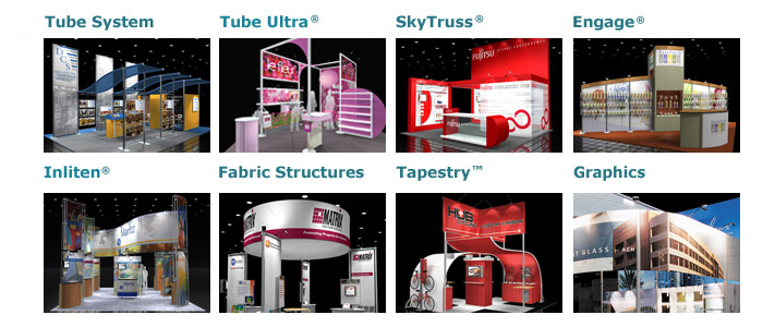 Skyline offers 7 tradeshow exhibit systems that seamlessly integrate into near infinite possibilities. We can also add custom touches for counters, product merchandising, and visual touches that achieve the look you want.