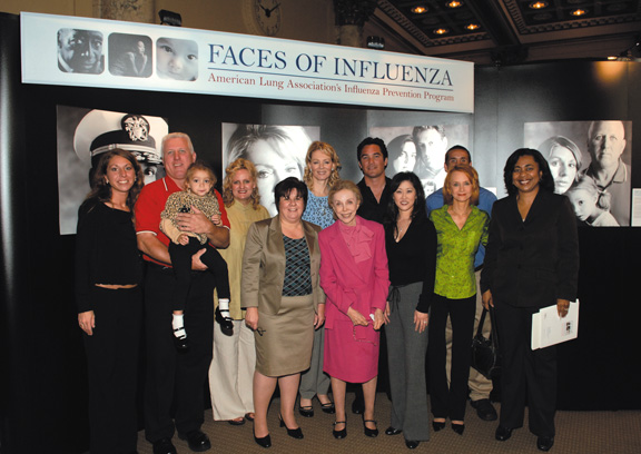 Twenty portraits on a traveling exhibit help the American Lung Association tell a cautionary tale about influenza and the need for vaccination. "The simplicity and elegance of the Skyline display allowed us to showcase the striking portraits for maximum impact," says Fred Lake of the Cooney/Waters Group, the health-care communications firm that developed the Faces of Influenza initiative on behalf of the American Lung Association. "The detail is amazing. We started with outstanding photography, and that quality comes through in every graphic," Lake says. The exhibit was designed to be elegant and affordable. The double-sided units total 60 linear feet of display with efficient use of floor space. The curved displays can stand alone or with two or three in a serpentine layout. At the exhibit, the Association hosted celebrity appearances, educated visitors about the disease and vaccination, and administered immunizations for the potentially deadly virus. Download printable version (.pdf) |