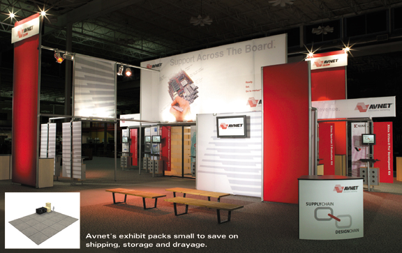 Avnet Electronics Marketing decided to invest heavily at the newly combined 2004 electronicaUSA and Embedded Systems Conference. Avnet committed to two large island exhibits, measuring 40' x 50' and 30' x 30', one in each hall of the show, representing their Semiconductor and Interconnect, Passive and Electromechanical Divisions. Ian Basey, Marketing Director within Avnet's Integrated Marketing Team, organized the effort to understand Avnet's show objectives and create consistent messaging, content and design between the two distinctly different product-oriented booths. To aid Ian achieve these objectives, he chose Skyline as his preferred vendor. "It was great to have Skyline handling it all for us with a single point of contact," said Ian. "We achieved significant booth traffic. Both exhibits were eye-catching and really helped Avnet's presence and messages to stand out from the other exhibits in both show halls," Ian pointed out. "For any new booth, we will definitely go with Skyline." Download printable version (.pdf) |