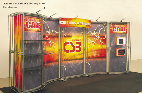 CSB Battery Technologies won Best of Show Honorable Mention at SUPERCOMM 2003. "The award proves we made the right decision," says Chuck Mencke, Marketing Information Technology Manager for the Fort Worth, Texas company. "We were breaking into a new market sector so we really wanted to make an impression," says Chuck. "We chose to rent a Skyline Inliten® exhibit rather than purchase, to gauge attendees' reaction to the design. We had our best showing ever." After the successful show, they bought the booth. "We like the functionality of Skyline's modular exhibit. It can be changed and reconfigured to look like a totally different booth very easily." "Skyline's quality products, innovative designs and its worldwide support network are impressive," says Chuck. "Another attraction for me is Skyline's dealer support network. No matter whom you deal with you are treated as if you are one of their customers." Download printable version (.pdf) |