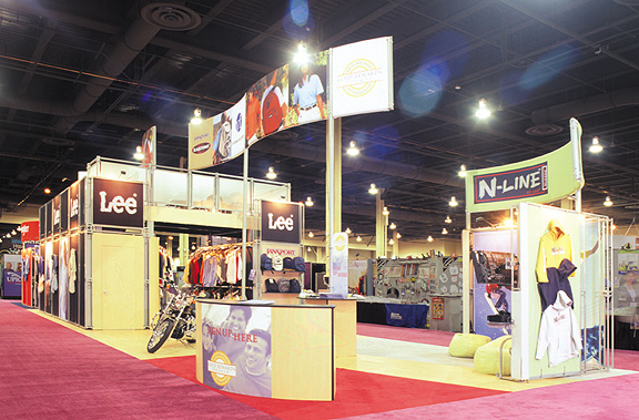 After a series of acquisitions, VF Brand Solutions is now the world's largest apparel manufacturer, but is less known than the brands they own, including JanSport, Lee, Wrangler, and Gitano. To help change that perception, they asked Skyline to design a bold exhibit that would differentiate them from their competitors and merchandise over 150 of their apparel items. Previously, VF Brand Solutions had been impressed using Skyline for their inline exhibits. They knew Skyline could help lower their shipping, drayage, I&D and refurbishing costs compared to their traditional custom exhibit. VF Brand Solutions rented the Skyline exhibit hardware to keep down costs and add flexibility, and purchased graphics that strongly promoted the VF Brand Solutions name itself. The exhibit also incorporated a double-deck structure for impressive conference areas. Download printable version (.pdf) |